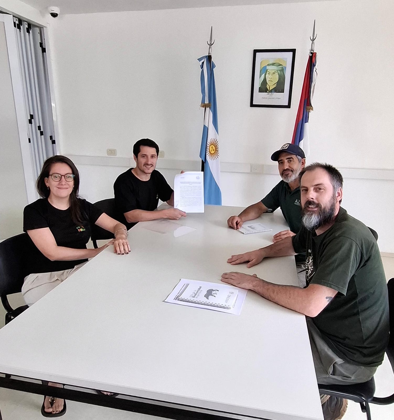 Durante la firma que tuvo lugar en la sede del IMiBio, ubicada en calle Ñamandú Ru Eté S/N de Puerto Iguazú, en representación del instituto que preside la Mgtr. Arq. Viviana Rovira estuvieron presentes el Dir. Gral. Ejecutivo del IMiBio, Dr. Emanuel Grassi y la Directora de Investigación, Lic. Cecilia Miranda; mientras que hicieron lo propio como parte del Centro de Rescate de Animales Silvestres “Güirá Oga”. Hernán Ibáñez, responsable de la Dirección y el Mgtr. Dante di Nucci, responsable del Área Veterinaria.