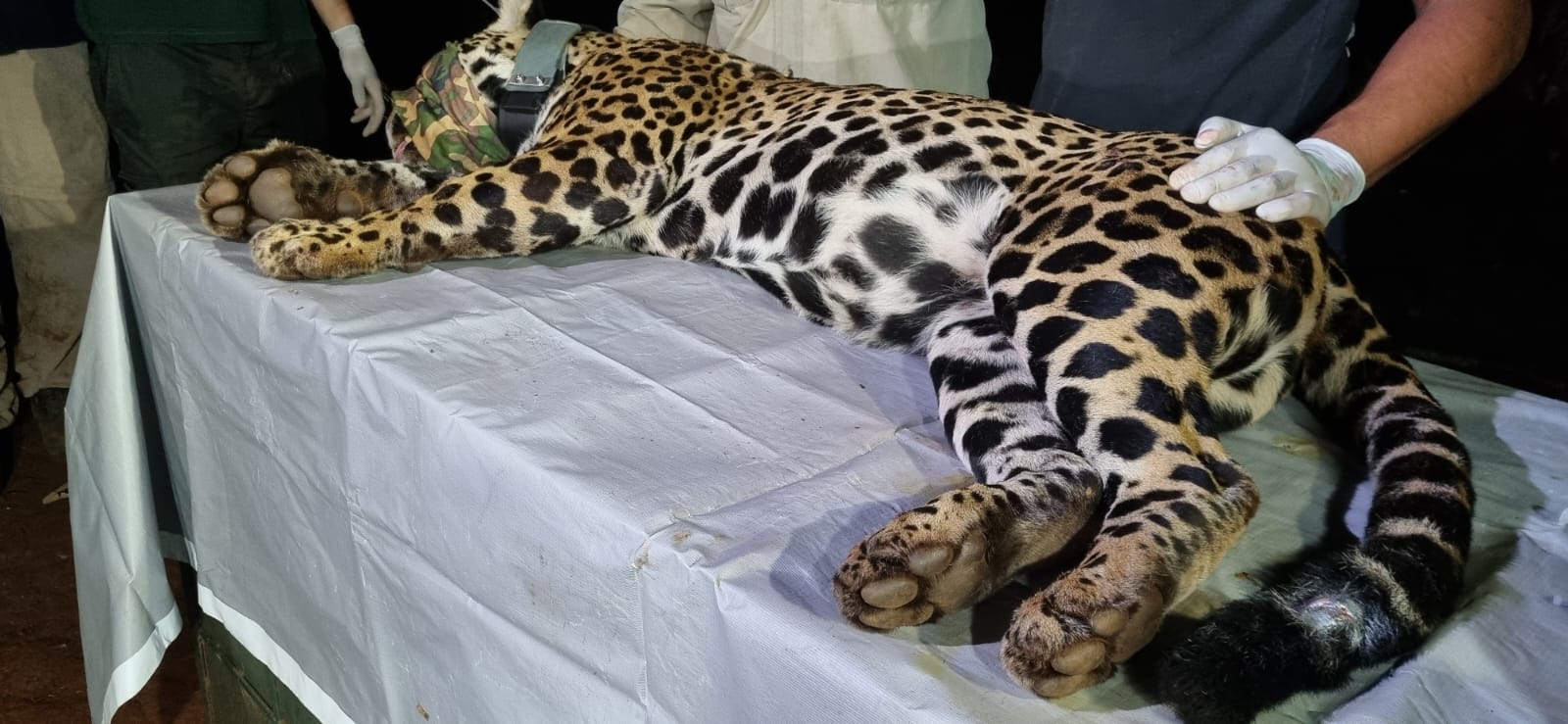 El pasado sábado fue capturado para su monitoreo un ejemplar de yaguareté (Panthera onca) al que se le colocó un collar satelital para su seguimiento, se le tomaron muestras de sangre, peso y talla; y luego fue liberado dentro de un área natural protegida de la Provincia.