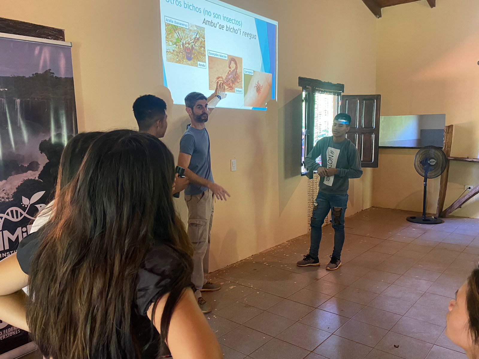 “Este proyecto incentiva a los jóvenes. Estoy muy contento; he visto que los jóvenes demuestran gran interés por aprender, y esto también se transmite a otros”, destacó Alcides Ojeda durante su intervención. Alcides, perteneciente al plantel del IMiBio, es un referente dentro de la aldea Yryapú, y una pieza central en el vínculo con la sociedad mbya.