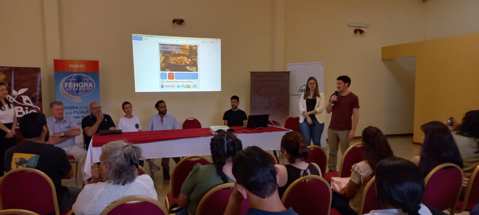 La cita estuvo dividida en dos etapas, la primera destinada a exposiciones orales de productores, emprendedores y expertos. En este marco, el Dir. Gral. Ejecutivo del IMiBio, Dr. Emanuel Grassi, y la Ing. en Alimentos, Paula Álvarez, dieron la bienvenida a los presentes y disertaron en torno a las actividades realizadas como parte del proyecto “Promoción del cultivo y recolección de hongos comestibles de Misiones”.