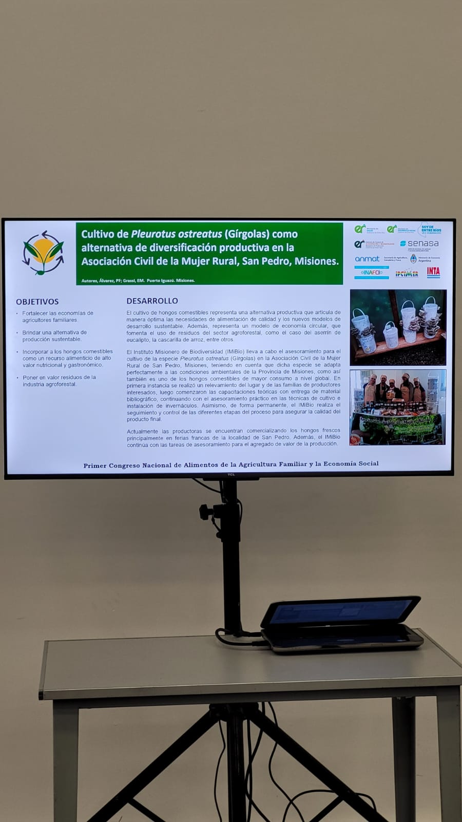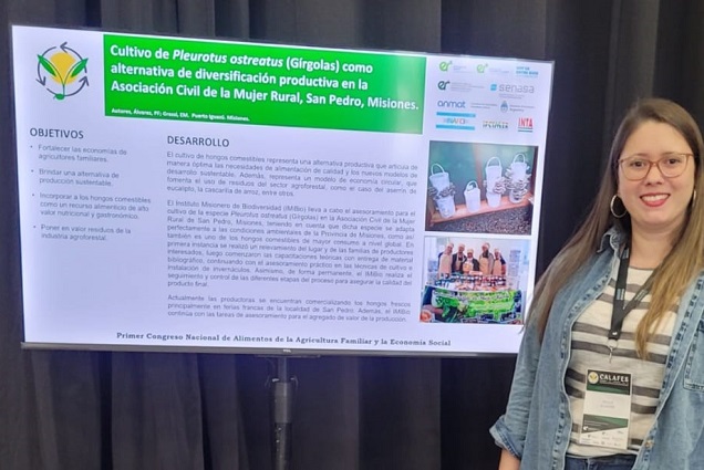 En esta oportunidad, Álvarez participó de varias charlas y talleres, incluidos los talleres Pre-congreso “Gestiones de trámites asociados a la Agricultura Familiar y la Economía Social” y “Estrategias de aplicación para la Ley de Alimentación Saludable”; al tiempo que tuvo la oportunidad de presentar a nivel nacional el trabajo de investigación que desarrolla el IMiBio: “Cultivo de Pleurotus ostreatus (Gírgolas) como alternativa de diversificación productiva en San Pedro, Misiones”.
