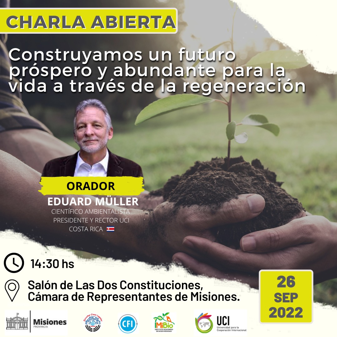 El próximo lunes 26 de septiembre, el Dr. Eduard Müller, Científico Ambientalista, fundador y Rector de la Universidad de Cooperación Internacional de Costa Rica; visitará la capital misionera para ofrecer la charla abierta “Construyamos un futuro próspero y abundante para la vida a través de la regeneración”.