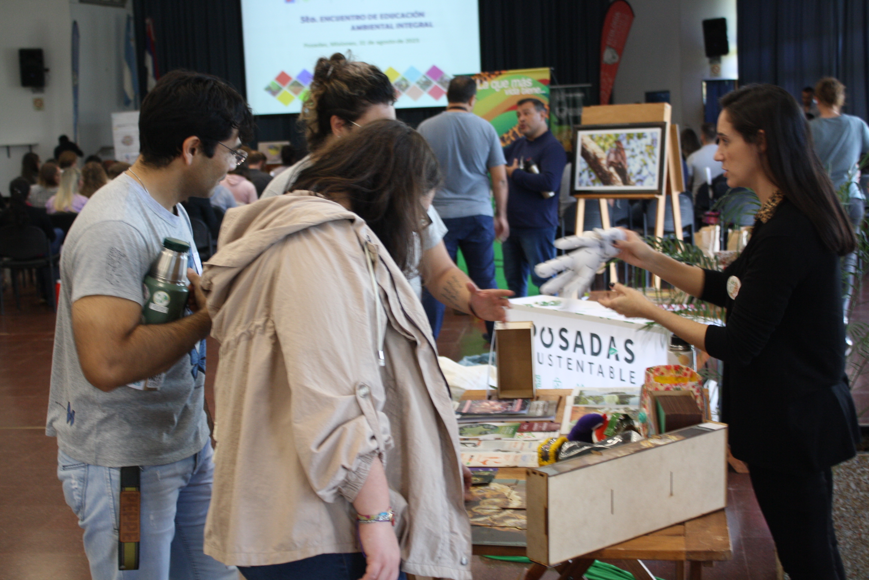 Además compartimos experiencias con otras instituciones que trabajan la EAI y colocamos un stand para mostrar a los presentes los materiales didácticos desarrollados por el IMiBio para trabajar la flora, fauna y funga de la Selva Misionera desde el enfoque de la Educación Ambiental.