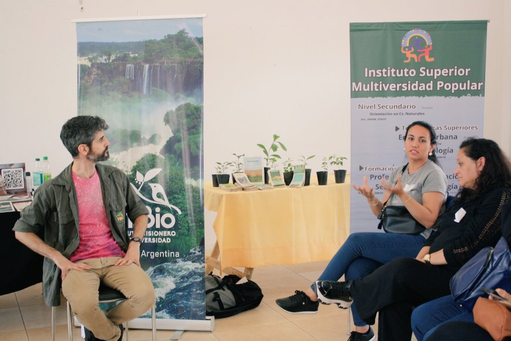 En ese marco, el Instituto Misionero de Biodiversidad (IMiBio) formó parte del encuentro a través del Dir. Gral. Ejecutivo, Dr. Emanuel Grassi y el Lic. en Ciencias Biológicas, Alejandro Saint Esteven; quienes desarrollaron el taller "Conservación de la Biodiversidad desde las escuelas", en el cual se abordó un caso real de la biodiversidad misionera para trabajar los conceptos de especies nativas, especies exóticas, mascotismo, políticas ambientales y el rol del docente como formador de conciencia ambiental.