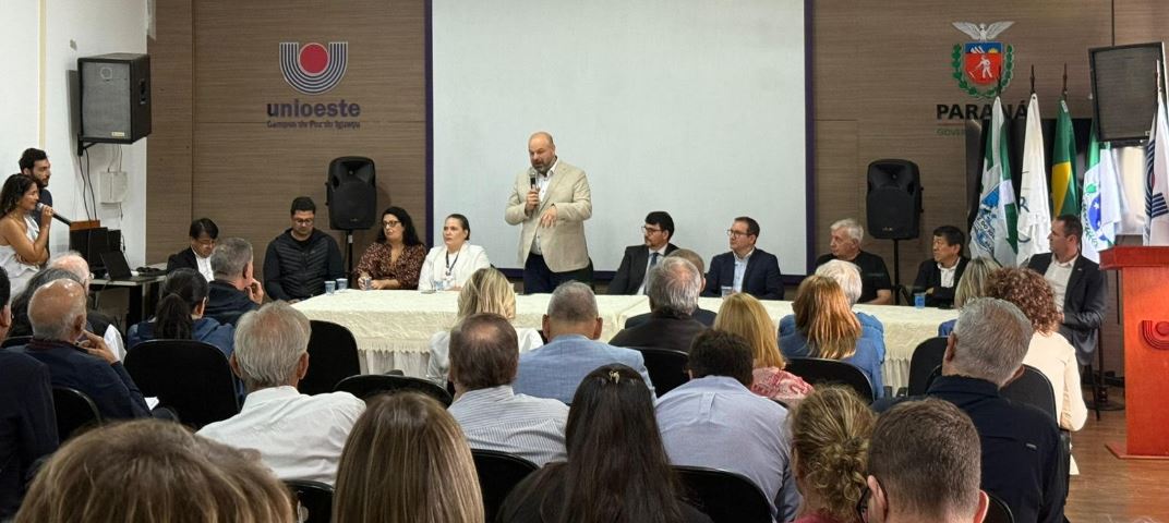Aprovechando la visita a Foz de Iguazú, los representantes del IMiBio participaron del 1º Encuentro Internacional de Bioeconomía, Salud y Transiciones Sostenibles en el Campus de la Universidad Estatal del Oeste de Paraná (UNIOESTE) que se desarrolló el miércoles 10.