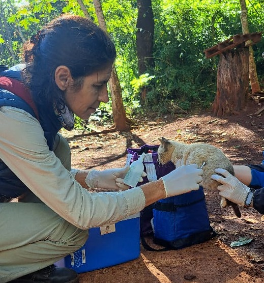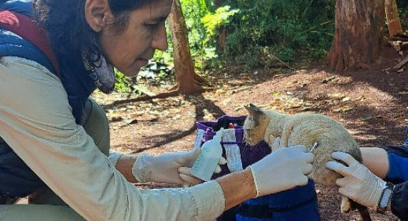 Este jueves 30, un equipo del Instituto Misionero de Biodiversidad (IMiBio) integrado por la Bioq. Katherina Vizcaychipi, el Lic. Alejandro Saint Esteven, y el Tec. Laboratorista Elías Delgado; participó junto a un grupo de ocho veterinarios de la visita a la aldea mbya guaraní Iryapú, en el marco de la campaña “Una Salud para el bienestar animal en Puerto Iguazú”.