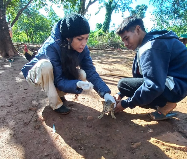 En ese contexto, el grupo se encargó de relevar la población canina y felina de la aldea, para luego vacunar a 189 mascotas, desparasitar a 273 animales (datos preliminares); y ofrecer charlas preventivas sobre la importancia de sostener estos cuidados para evitar la posible propagación de enfermedades zoonóticas.
