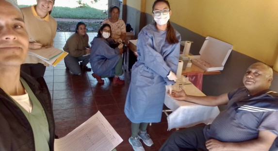 En el marco de las acciones de vigilancia que desarrollan en conjunto equipos de Salud Pública provincial y nacional; ayer las Bioquímicas del LAI-IMiBio, Katherina Vizcaychipi y Tania Alarcón, ambas microscopistas certificadas para paludismo, junto al Tec. Elías Delgado; realizaron actividades de diagnóstico laboratorial.