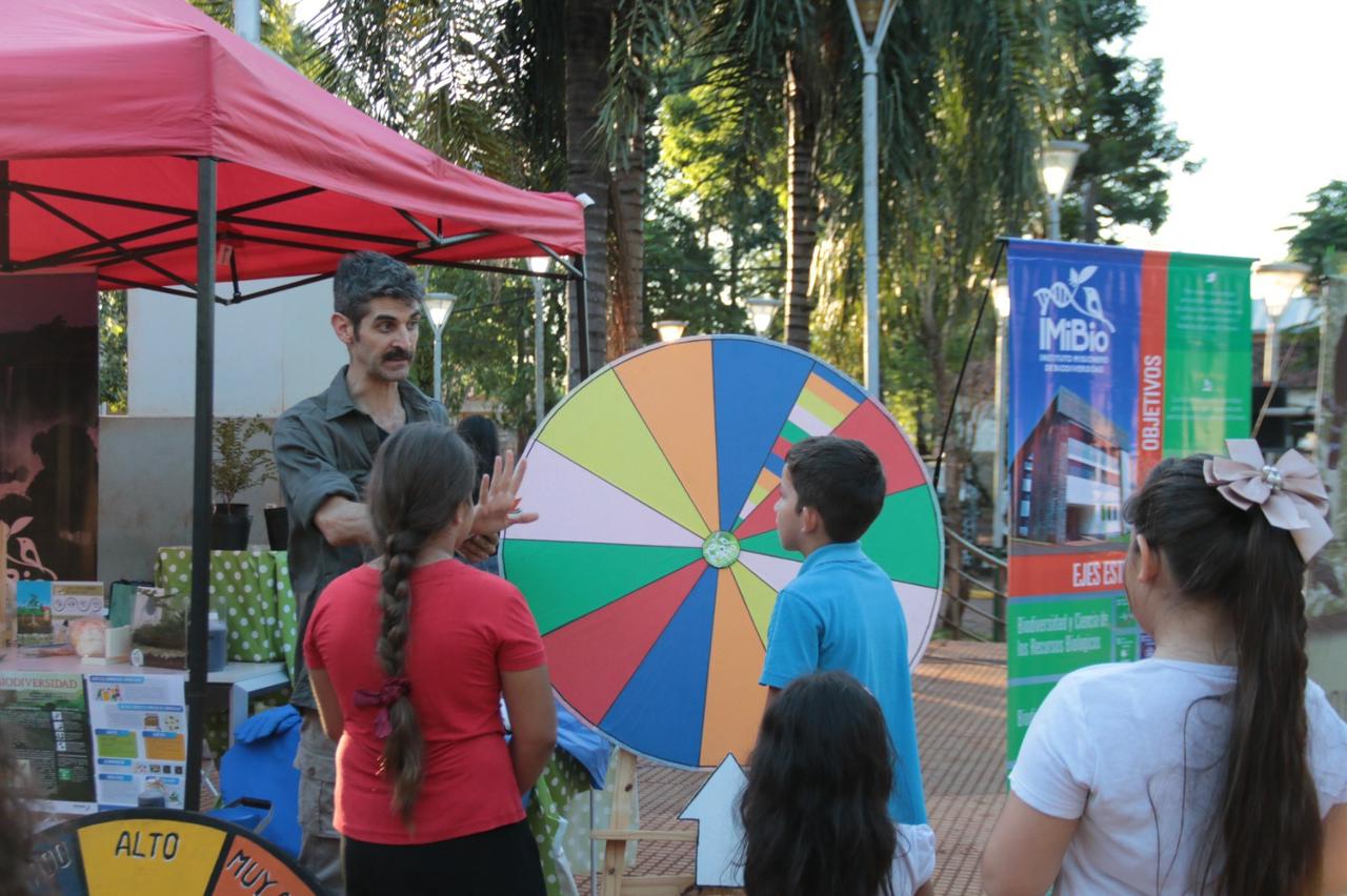 En ese marco, el grupo del IMiBio comandado el Dir. Gral. Ejecutivo, Dr. Emanuel Grassi; colocó un stand en el que a través de charlas y juegos didácticos convocó a vecinos de todas las edades a dialogar sobre la importancia de preservar la Selva Paranaense, hogar de cientos de especies autóctonas de flora, fauna y funga; y a aprender nociones básicas de compostaje, Monumentos Naturales Provinciales, y el peligro que representan de los incendios forestales para las Áreas Naturales Protegidas.