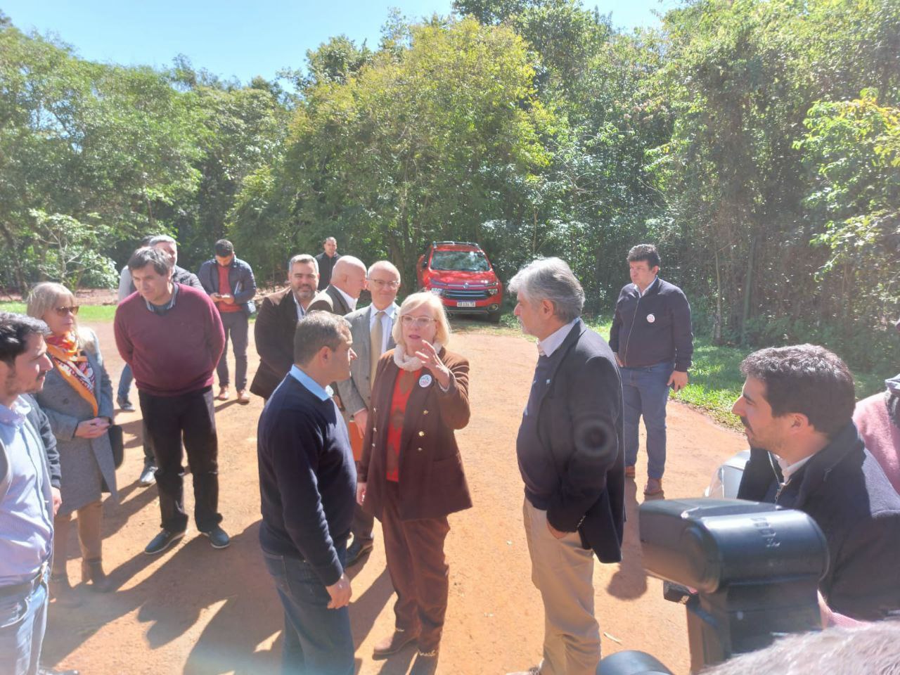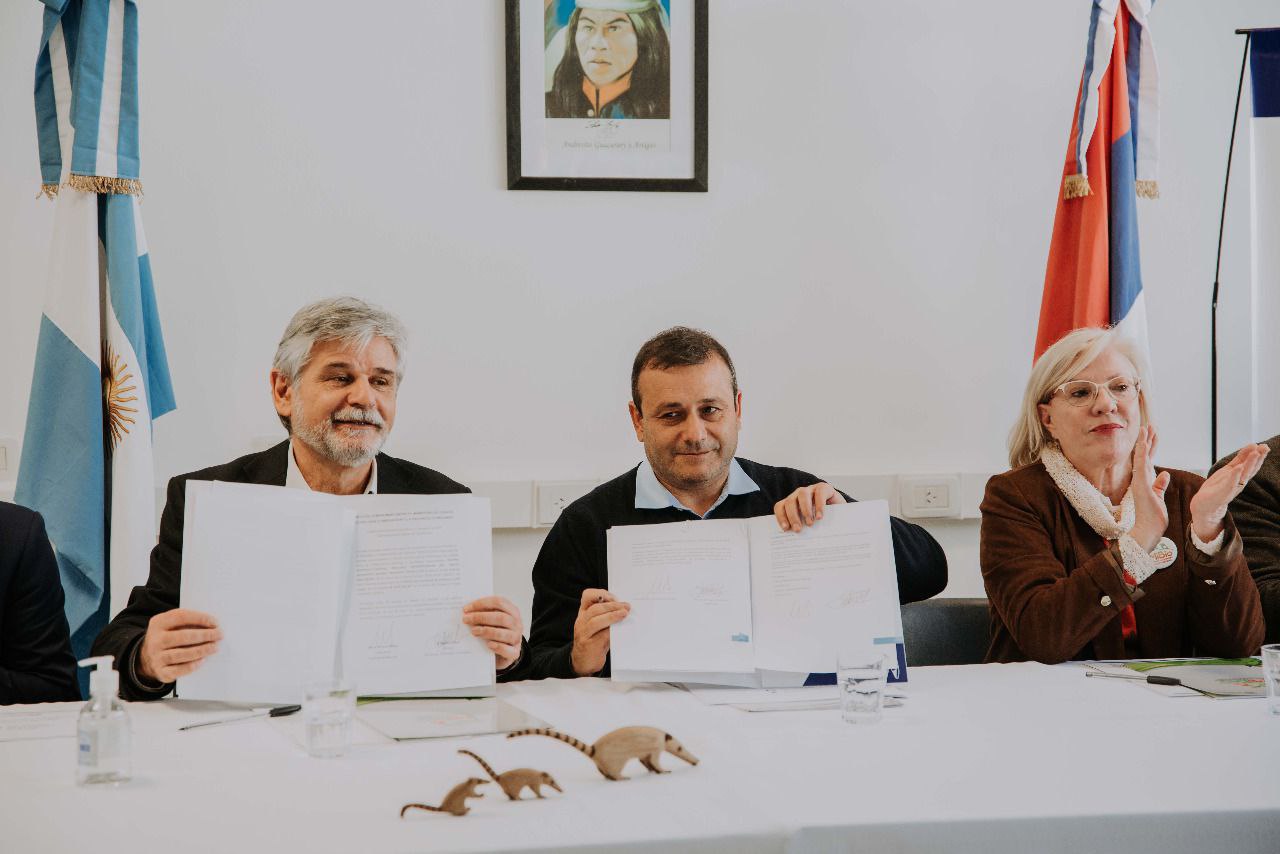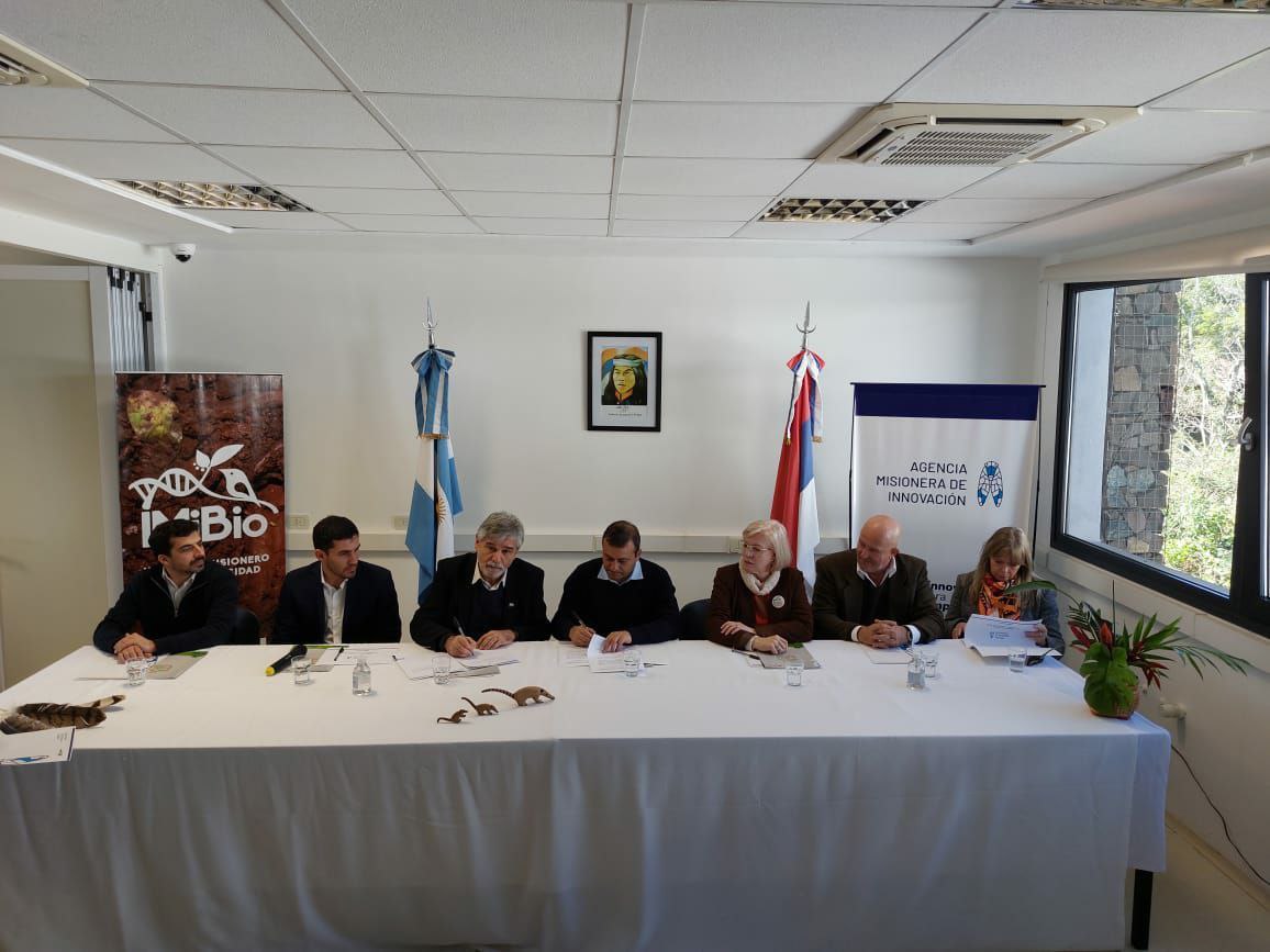 Antes de la rúbrica, ambos funcionarios fueron recibidos en el Instituto Misionero de Biodiversidad (IMiBio), por la presidenta del IMiBio, Mgtr. Arq. Viviana Rovira, y gran parte de su equipo de trabajo.