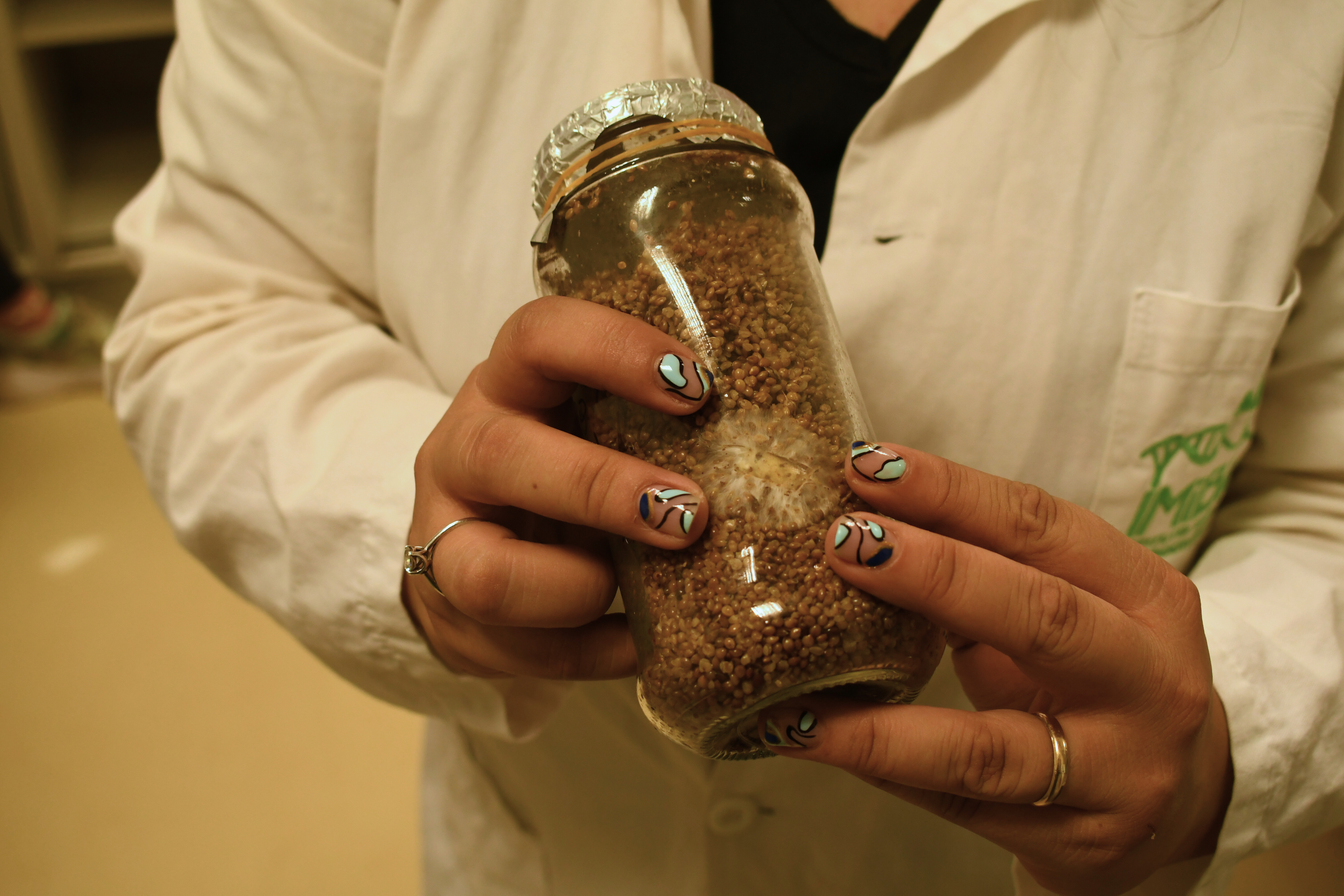 En ese contexto, la Biól. Florencia Restelli y la técnica Gabriela Flach han estado trabajando en el Laboratorio de Microbiología en la selección de las cepas fúngicas de mayor interés, la caracterización de sus necesidades fisiológicas, la determinación de semillas para inóculo inicial la determinación de sustratos y/o mezcla de los mismos a partir de subproductos lignocelulósicos abundantes en la región y la descripción procedimental del cultivo intensivo.
