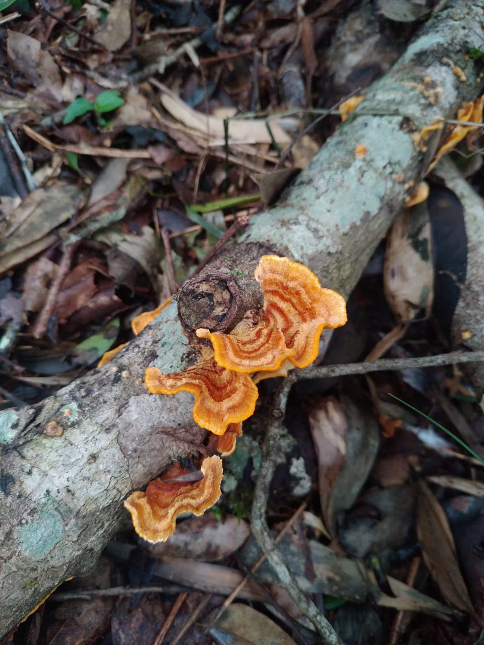 * Entre las particularidades a destacar se relevó un área afectada por los incendios ocurridos en el mes de enero del corriente año, en donde se observaron e identificaron ejemplares de Lapacho negro (Handroanthus heptaphyllus) en rebrote y los hongos que fructificaron en esta primera instancia de recuperación.