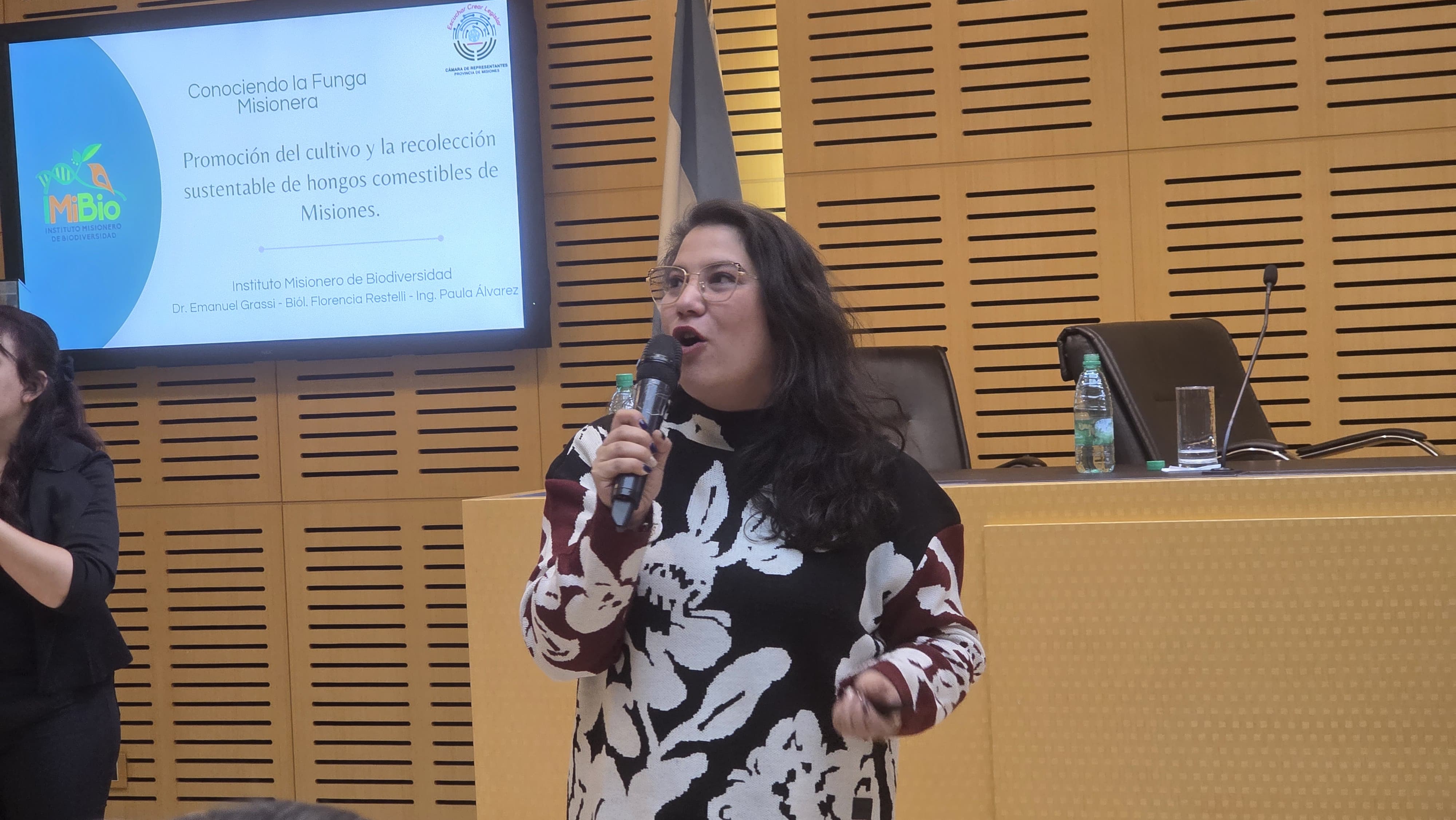 Tras la apertura formal, la Biól. Florencia Restelli del Instituto Misionero de Biodiversidad (IMiBio) presentó el "Programa de Promoción de Cultivos y Recolección de Hongos" que lleva adelante la institución desde el 2021. Además de enumerar los trabajos científicos que se encuentran actualmente en desarrollo, mencionó que tanto la creación de material bibliográfico como la realización de talleres teóricos – prácticos que dicta el IMiBio a lo largo y ancho de la provincia han logrado impulsar la recolección sustentable y el cultivo de hongos comestibles de Misiones.