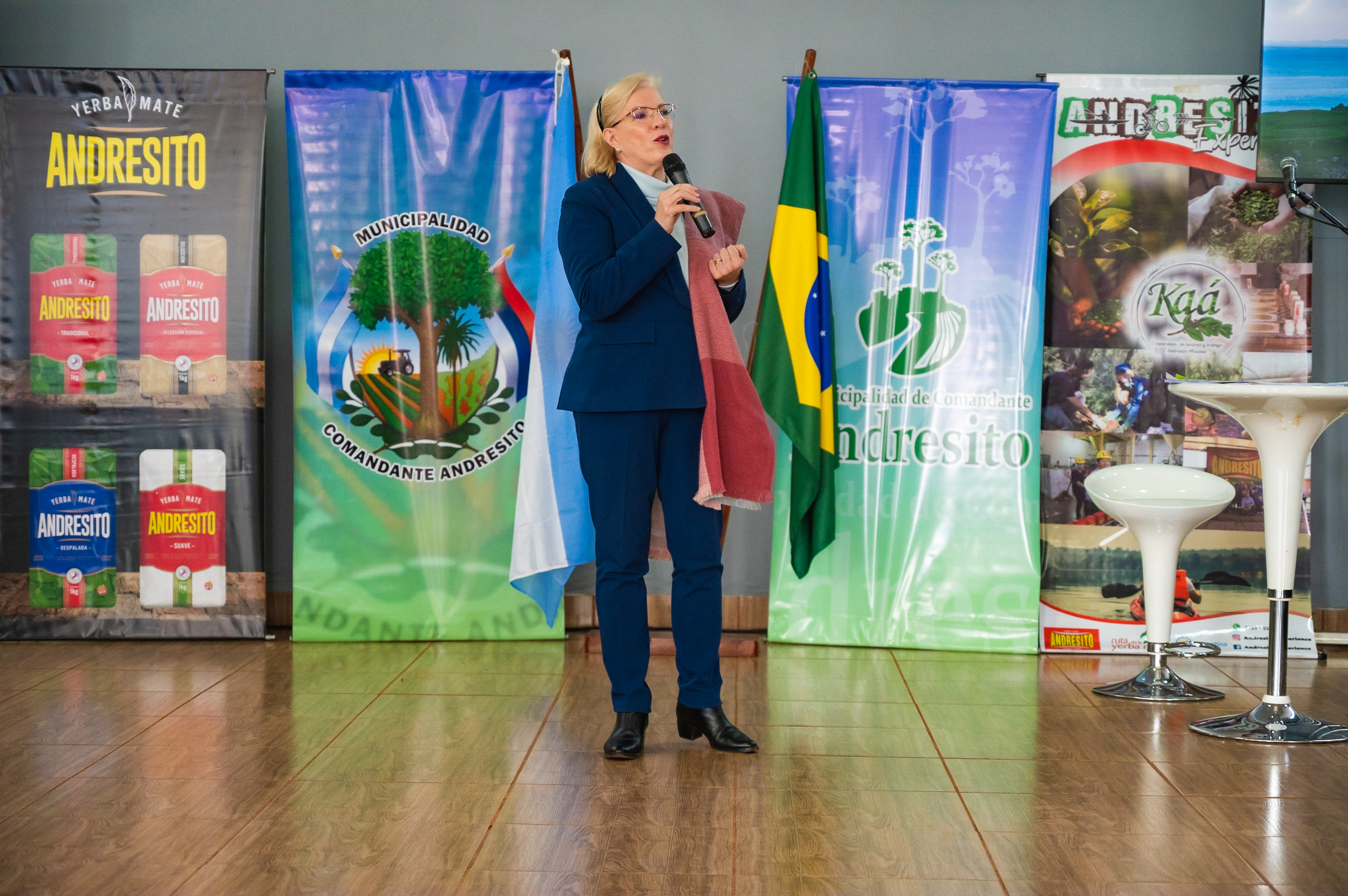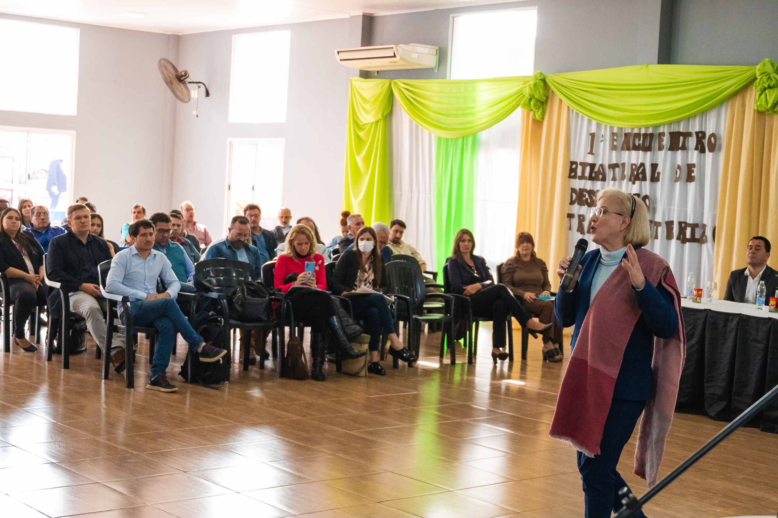 Este viernes, la Presidenta del IMiBio, Mgter Arq. Viviana Rovira, participó del evento que se desarrolló en Comandante Andresito con la presencia del intendente anfitrión, Bruno Beck, el jefe comunal de San Antonio, Fausto Rojas, su par de Bernardo de Irigoyen, Guillermo Fernández, y alcaldes y funcionarios de las localidades fronterizas de Brasil.