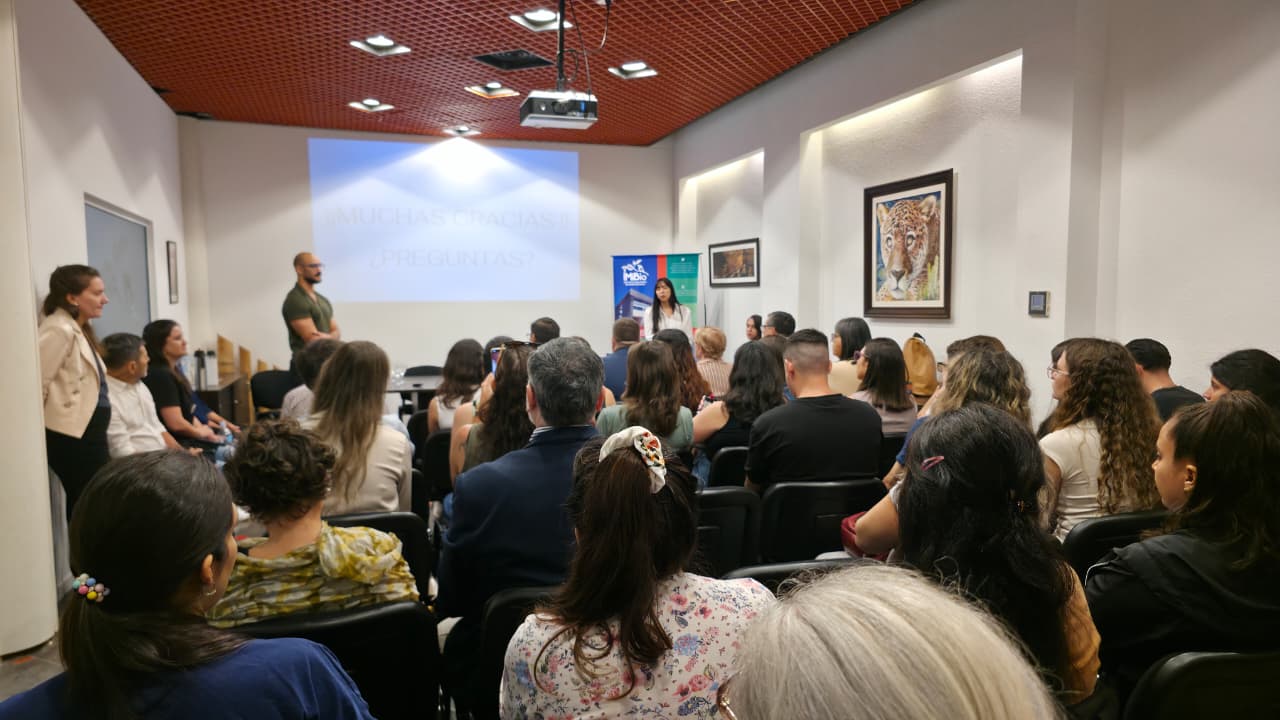La charla introductoria estuvo a cargo del M. Sc. Diego Cadena (IMiBio), quien resumió la importancia de contar con datos científicos basados en estudios de ADN para respaldar políticas públicas. Luego fue secundado por la Lic. Evelin Saguchi y el Lic. Enzo Serniotti (IMiBio), quienes en su disertación “Biobanco del IMiBio: Conservando la genética misionera”, detallaron el funcionamiento del biorrepositorio del instituto, que actualmente almacena más de 5.500 muestras, siendo el 60% referidas a la biodiversidad misionera y un 40% destinadas a estudios del área de la salud.