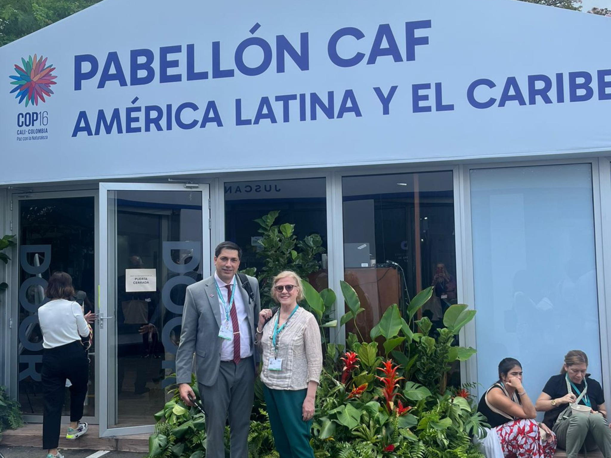 El viernes 25, la Presidenta del IMiBio y el Ministro de Ecología formaron parte del Diálogo del Pabellón CAF- Banco de Desarrollo de América Latina y el Caribe, en el que se abordaron temas clave relacionados con la innovación y el financiamiento para la preservación y restauración de ecosistemas estratégicos, entre los que se destaca el Bosque Atlántico.
