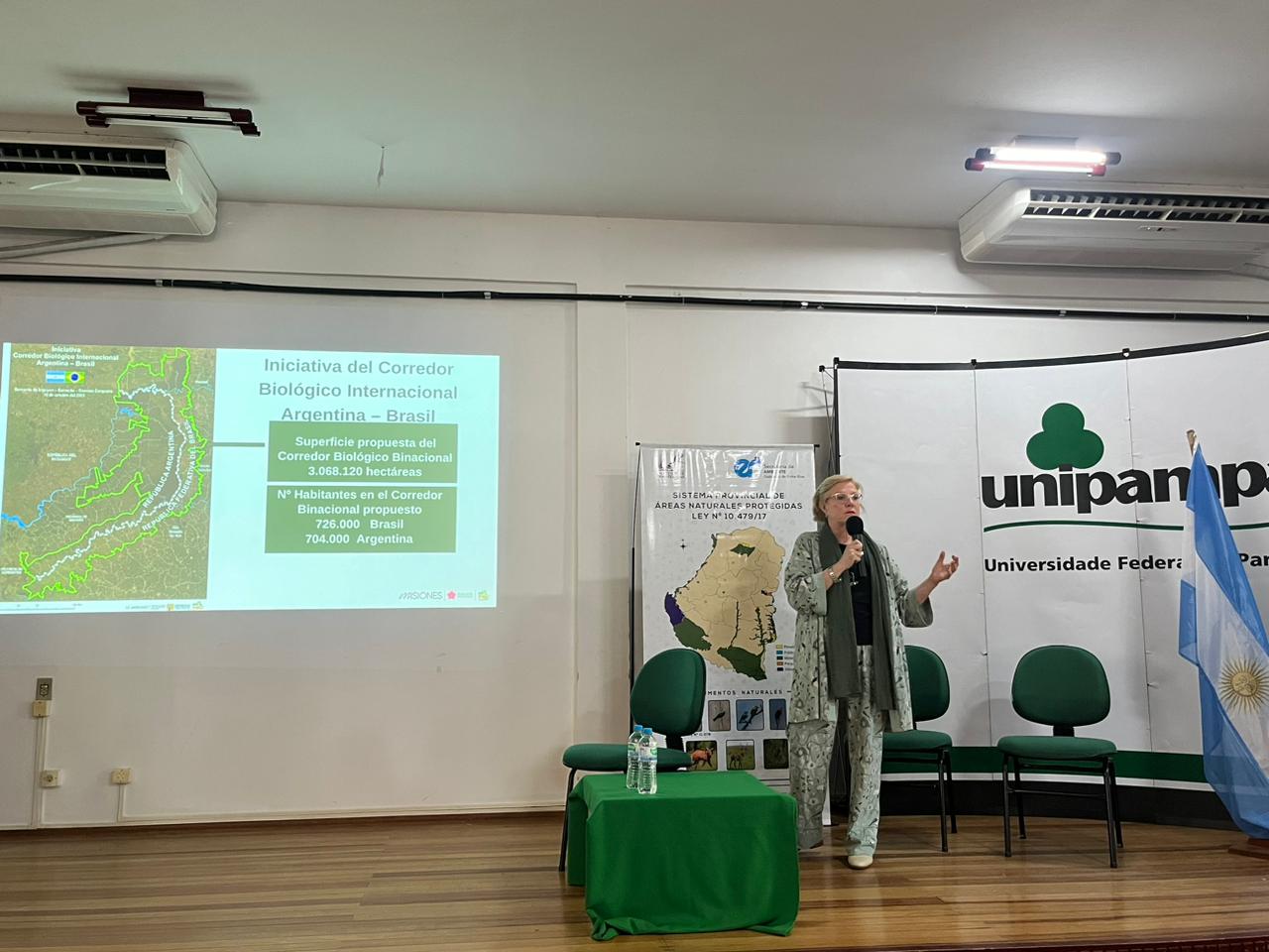 Durante el evento que se desarrolló del 14 al 16 de noviembre en Uruguaiana, Brasil; la Presidenta del IMiBio, Mgrt. Arq. Viviana Rovira ofreció el viernes 15 la disertación “Iniciativa del Corredor Biológico Internacional Argentina-Brasil”, donde presentó los alcances de la propuesta y la importancia de adoptar un enfoque unificado en relación al cuidado ambiental de las áreas naturales transfronterizas.