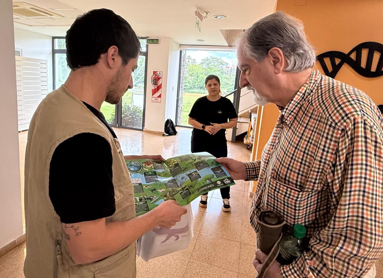 Durante su recorrida por el instituto, el Dr. Enbid Irujo estuvo acompañado por un grupo de especialistas, entre ellos el abogado y consultor en recursos hídricos Dr. Pablo Lucatelli y el Dr. Miguel Petracca, doctor en Derecho por la Universidad Complutense de Madrid. La comitiva fue recibida por el Dir. Ejecutivo, Dr. Emanuel Grassi, y por el equipo técnico del IMiBio, quienes expusieron los principales proyectos de investigación y conservación que la institución lleva adelante en la provincia de Misiones.