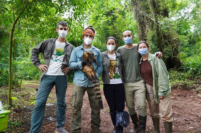 Del 14 al 16 de noviembre la Bioq. Tania Alarcón y el Dr. Alejandro Saint Esteven, integrantes del Instituto Misionero de Biodiversidad (IMiBio) junto al M.V. Dr. Juan Pablo Arrabal del Instituto de Biología Subtropical (IBS–UNaM–Conicet) llevaron adelante una campaña de muestreo de coatíes (Nasua nasua) que habitan en el área de reservas privadas que integran el Corredor Biológico Urugua-í – Foerster como las reservas Koa, Yvytu y San Sebastián de la Selva, ubicadas en cercanías a la localidad de Comandante Andresito.